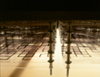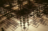 Sculptural: This is a 5 foot by 5 foot light table that is about 1 foot deep. On top of the light table is an array of 8"X10" units that are made up of several sheets of translucently printed acetate separated with carriage bolts and rubber tubing. All of the units together make up a backlit multidimensional print. |